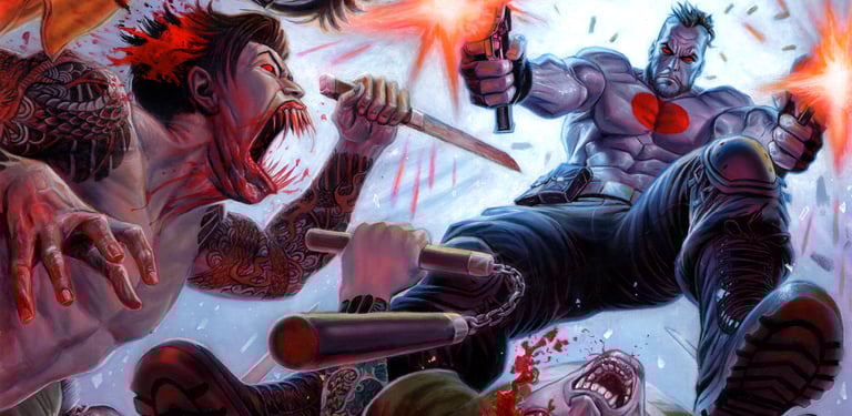 The secret origin of vampirism and the true order of the world is revealed to Bloodshot as he undergoes a startling transformation. Are the Yakuza ready to face the wrath of... vampire Bloodshot?! Are any of us ready for this?! Probably not, but it’s happening anyway! PLUS: Secrets of Bloodshot’s past are revealed and things get VERY gory!